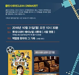 클린시네마 썸네일형 리스트형 2016년, 클린시네마에 다녀왔습니다~ 2016년 연말은 환우회와 함께^^ 2016년 12월 29일 목요일 오전, 지난번과 같이 롯데시네마 샤롯데관 명동점에서 클린시네마가 진행되었습니다~ 평소 면역력이 약한 백혈병 환우들과 가족분들을 초대하였습니다! 환우회의 2016년 마지막 행사이기도 했던 클린시네마와 함께 해주셔서 감사드립니다 >. 더보기 클린시네마에 백혈병 환우와 그 가족들을 초대합니다~ 클린시네마에 백혈병 환우와 그 가족들을 초대합니다~ 일시 : 2016년 12월29일(목) 오전 10시 40분 장소 : 롯데시네마 에비뉴엘 샤롯데 (서울 명동) 더보기 [뉴스레터 16호] '서로 함께'라서 더 좋은 울타리 소식 - 11월 이야기 '서로 함께'라서 더 좋은 울타리 소식 백혈병환우회 11월 이야기 더보기 2016.10.31 월요일, 클린시네마에 다녀왔습니다~ 일시 : 2016년 10월 31일 오전 장소 : 롯데시네마 에비뉴엘 샤롯데 (서울 명동) 클린시네마는 30석 규모의 VIP영화관에서 평소 약해진 면역력으로 일반영화관을 찾기 어려운 백혈병 환우와 그 가족들을 초대해 영화를 관람하는 프로그램입니다. 더보기 클린시네마에 백혈병 환우와 그 가족들을 초대합니다. 일시 : 2016년 10월31일(월) 오전 10시 30분 장소 : 롯데시네마 에비뉴엘 샤롯데 (서울 명동) 더보기 이전 1 다음